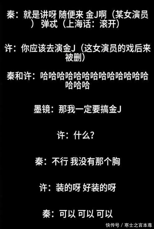 首先就是搞笑艺人金靖,王家卫提到了金靖曾面试过《繁花》的事情,但是几人没有评价她的演技,而是抓住人家的外貌不放了。 王家卫开玩笑地说让秦雯去演金靖的角色,秦雯却莫名其妙地提到金靖的胸围,几个人说说笑笑几句话全是冒犯。