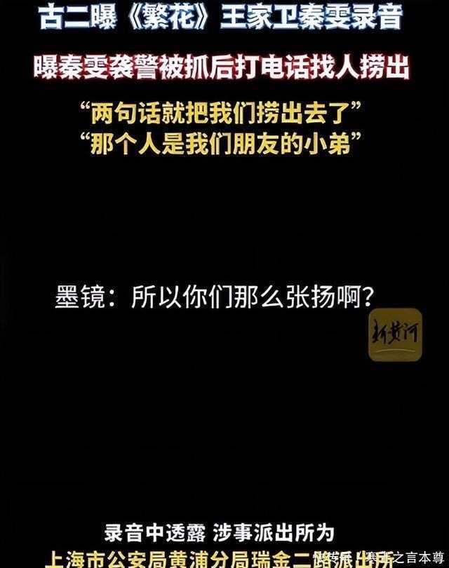 不发声明还好,一发声明就把古二惹怒了,古二见他们是不可能悔改了于是放出了一大段王家卫与秦雯的录音。 事件波及多人 在录音中王家卫与秦雯一副高高在上的姿态,几分钟的录音里提到了五六个人,而且个个都是娱乐圈里有头有脸的人物。